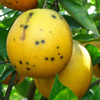 Los síntomas de mancha negra de los cítricos incluyen frutas con manchitas moteadas o con manchas negras.